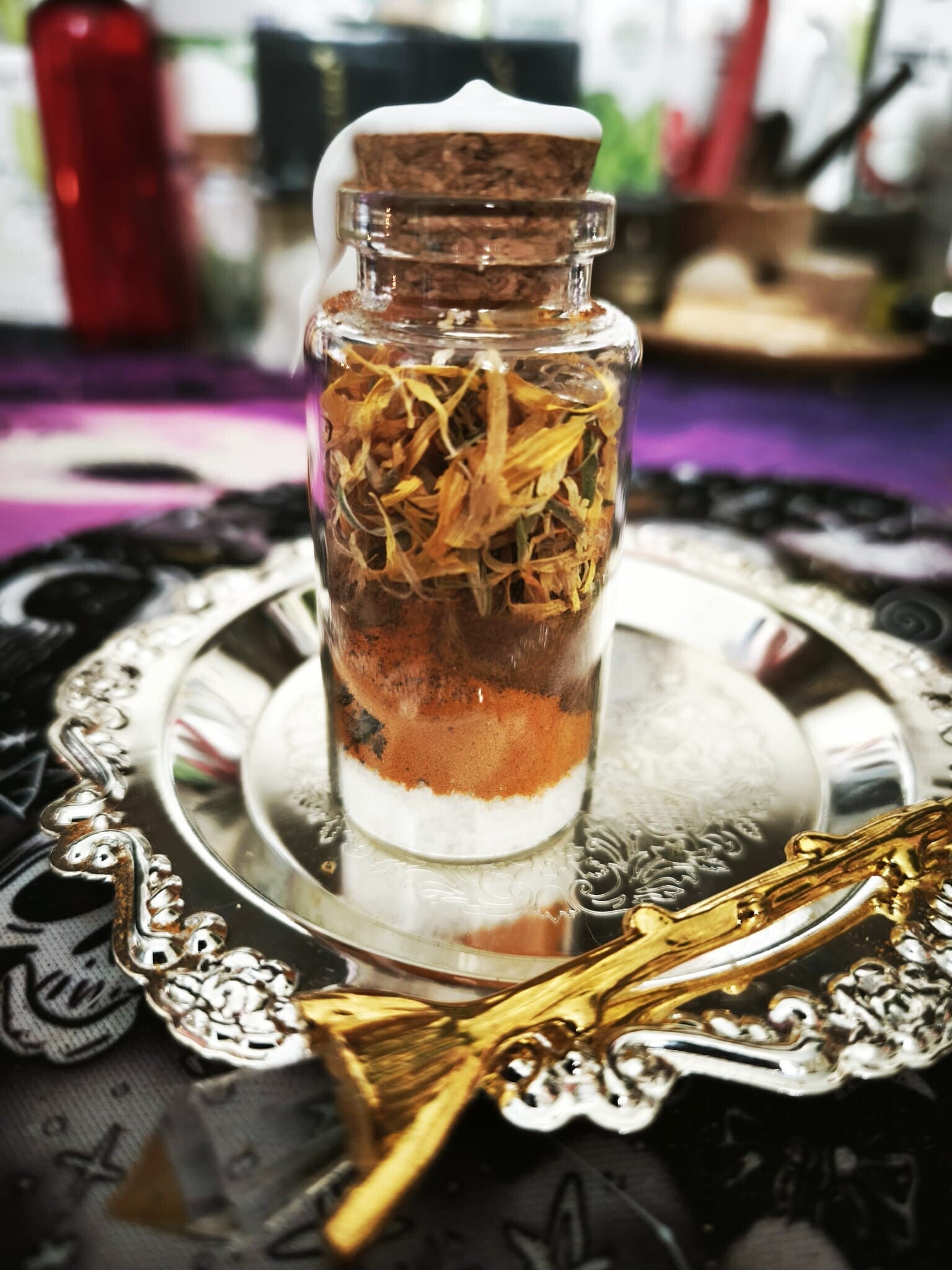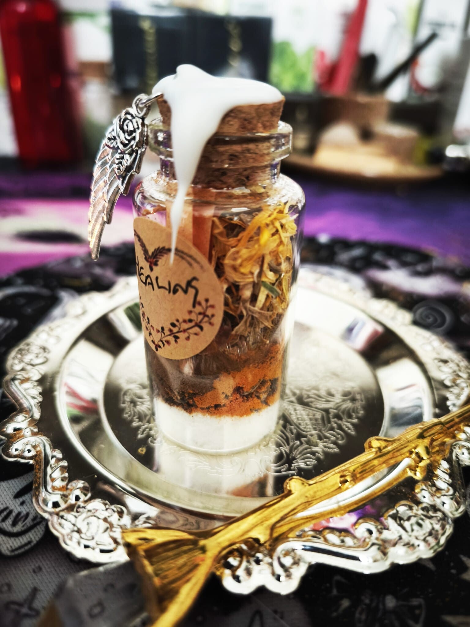 A grief and loss spell jar is a crafted item, often a small bottle or jar, (mine are a good size 25ml) that contains a combination of herbs, crystals, and other symbolic items intended to aid in healing and processing grief. These jars are created with specific intentions and correspondences associated with comfort, healing, and remembrance. They are not meant to be a substitute for professional help but rather a tool for personal comfort and reflection during a difficult time.