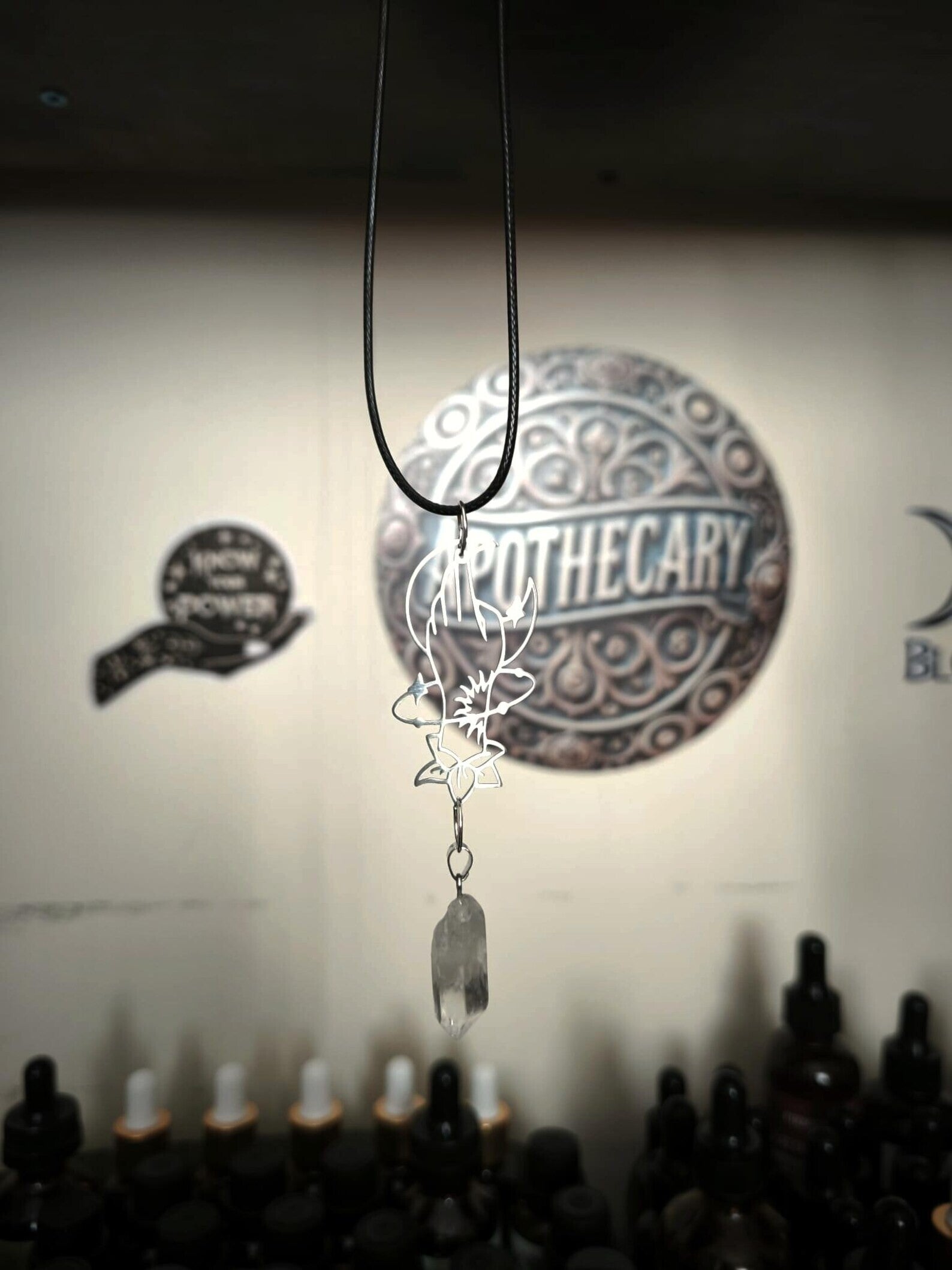 Spiritual necklace...Unique & hand made ** stunning large Moon palm pendant with quartz crystal** Charm witch evil eye.
